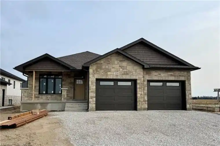 The finishing touches are going on this 1483 sqft stone bungalow at 358 Ivings Drive in Port Elgin. The main floor features 2 bedrooms, 2 full baths, laundry off the 2 car garage and an open concept dining room, kitchen and living room. The living room walks out to a covered deck 15 x 11 and a sodded yard. The basement is finished with a family room, 2 more bedrooms and full bath; there’s a nice size utility room for added storage. Included in this home; 2 gas fireplaces, central air, concrete drive, 9 ft ceilings on the main floor, automatic garage door openers, Quartz kitchen counter tops and more. HST is included in the list price provided the Buyer qualifies for the rebate and assigns it to the Builder on closing. Prices subject to change without notice.