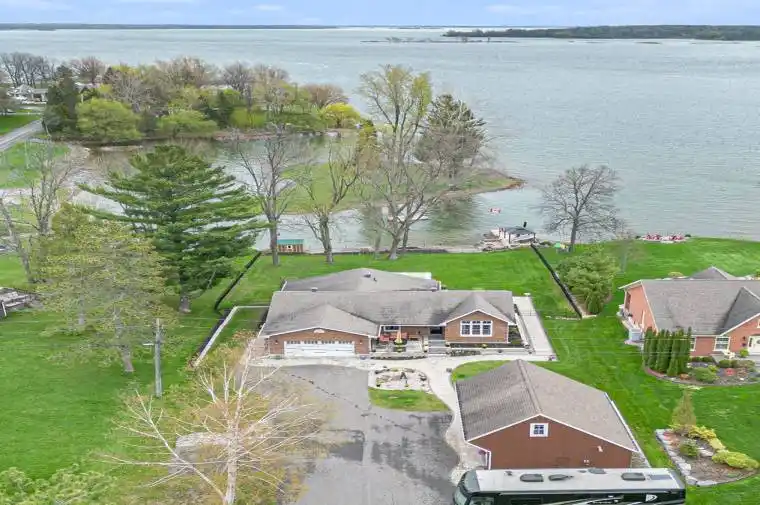 Live the life you’ve dreamed of! Situated in the heart of eastern Ontario’s premiere waterfront community, this exquisitely renovated five-bedroom, three-bathroom bungalow along the St. Lawrence River delivers an unmatched lifestyle. With nearly $400,000 in upgrades, this turnkey haven is crafted for those craving luxury and serenity. Every element radiates refinement, from the top-tier Monogram gas appliances in the chef’s kitchen to the expansive windows showcasing stunning river vistas from every room. The open-concept living area, anchored by a natural gas fireplace, blends tranquility and practicality, ideal for both unwinding and hosting. Enlarged Windows throughout give you an opportunity to enjoy the stunning waterfront views from every room. Outdoors, the property boasts meticulous landscaping with raised garden beds, new decks, and a reinforced driveway designed to accommodate heavy campers. The waterfront shines with a newly refinished dock, perfect for boating or savoring the calm riverfront atmosphere. The property also features a four-car garage setup: a double attached garage and a two-story detached double garage with gas heat, hydro, and an insulated loft, versatile enough for a workshop, guest suite, or premium storage. Just 50 minutes from two international airports and 5 minutes from the Trans Canada Highway, this home balances secluded elegance with convenience. No detail has been spared in this waterfront bungalow – it’s not just a residence but a lifestyle!
