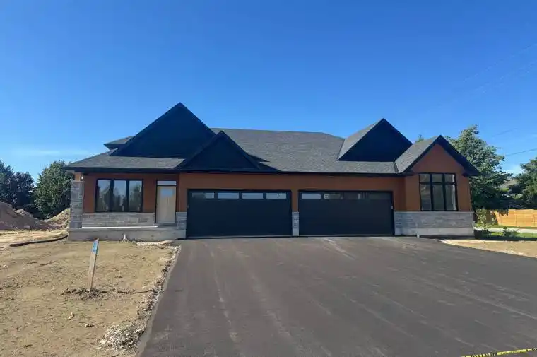 Under construction now in the Town of Thornbury, across from the Community Centre and walking distance to library, school and downtown. 3/4 bedroom semi-detached home with 2,134 sq ft finished space plus full unfinished basement. Main floor master w/ en-suite, guest room, laundry and open plan living / dining areas and 9′ ceilings. Gas fireplace in living room. Upper guest room plus loft / office space. Partially covered rear patio area. Kitchen appliances included. Long list of included features. Large single garage 24’x17′ with insulated garage door. Tarion New Home Warranty. Freehold property. No monthly fees. Property finished with paved driveway and sod. Quality building and finishes in prime town location.