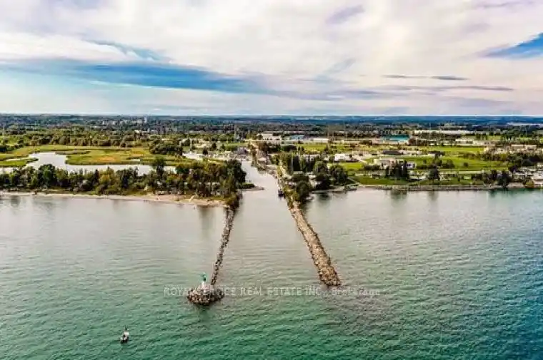 6.699 acres with more than 1,000 feet shoreline frontage on Lake Ontario & Port Darlington sheltered inner harbour, includes the only waterway channel to Lake Ontario from Port Darlington Harbour. More than 500 feet of boat dockage. Major built-in boat launch designed to handle boats weighing up to 50 Tons. On March 4, 1837 ownership of these lands was granted by King William IV in a Royal Charter to the Port Darlington Harbour Company. Subject property is leased to Seller’s associated company. Two small residential cottages on property “as is” condition. Sale of this property must be conditional upon sale of the Seller’s neighbouring property located at 125 Port Darlington Road. See neighbouring property details MLS# E12187220. NOTE: Two Marine Travel Lifts, each w/capacity up to 100,000 lbs., available for sale separate from sale of this property. See photos of Marine Travel Lifts. See Attachments for Schedule containing Legal Description, and 7-GeoWarehouse aerial view reports of the 7-PINS which total 6.699 acres.