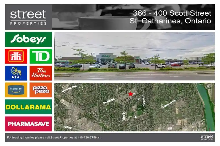 Strong Retail Shopping Centre Anchored By Sobeys, Dollarama And Home Hardware. Approx. 2,000 Sf Unit Available. Area Highlights: On Scott St. Spanning 2 Intersections And Adjacent To Strong Residential Area And Many Schools. Ample On-Site Parking. Close Access To QEW. Plaza Is Well Serviced By Public Transit. Various Uses Welcome Such As: QSR, Fast Casual Restaurants, Health Food Store, Fitness, Massage/Medical And Many More.
