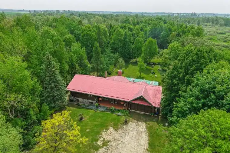 Discover a 12-acre oasis retreat featuring a charming cedar log home with rustic-chic flair. Six of the acres have been thoughtfully landscaped with over $300K in exotic and native trees, creating a lush backdrop that includes a peaceful pond with turtles, water lilies, and private walking trails. Inside, the home showcases a stylish fusion of boho and rustic-chic design across three bedrooms, a sleek, minimalist kitchen, and a stunning 300 sq. ft. sunroom. The interior is carpet-free and includes a double garage, plus a partially finished basement pre-framed for a two-bedroom apartment complete with live-edge floating stairs and a wood stove. With access from two roads, the property offers the potential for land severance (subject to permits). Additional features include a versatile metal barn/workshop, a cozy cedar cabana, and a separate metal storage shed Modern upgrades include two sump pumps and a high-quality water treatment system. Blending natural beauty, sustainable living, and functional spaces, this unique property offers an ideal countryside lifestyle. Approximately 10 acres of the property are eligible for a reforestation property tax reduction, with an estimated 1,0001,500 trees still available to be planted. Ideally situated just a short drive from Arthur and Grand Valley, 20 minutes to Orangeville and its hospital, close to Hockley Valley and Luther Marsh Conservation Area, and only about an hour from the GTA.