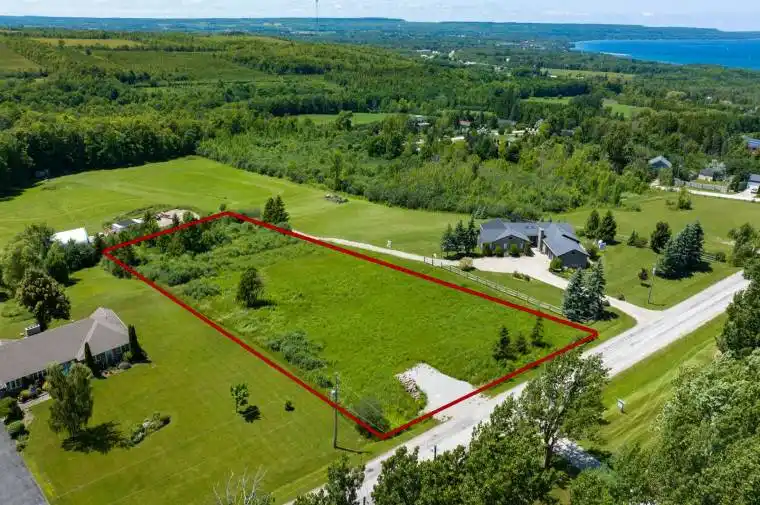 1.69 acre building lot with breathtaking valley and bay views The majority of the lot is flat, with a gentle slope at the back, making it an ideal location for a bungalow with a walkout basement. The property’s location is highly convenient, as it is only minutes away from downtown Meaford and a short drive to Thornbury, where you can enjoy a wide range of amenities. The region offers world-class golf courses, skiing opportunities, a picturesque harbour for boating, excellent restaurants, theaters, and shopping options. With the vast space provided by this lot, you have the opportunity to build your dream home and fully immerse yourself in the stunning views. Finding great building lots is challenging enough, but finding one with such remarkable views is even rarer. To ensure compliance with any height restrictions and setbacks that may apply, contact for further information. Additionally, thanks to the western exposure, you’ll have the pleasure of witnessing lovely sunsets from your backyard, which overlooks unobstructed views of the valley and the Escarpment. Don’t miss the chance to secure this exceptional property and start turning your dream home into a reality, while enjoying the beauty of the surrounding landscape.