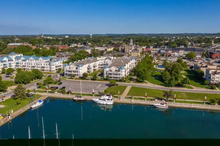 Fabulous views and beautiful sunrises for you to enjoy from your spacious terrace overlooking the lake and marina. This wonderful condo boasts 982 square feet of luxury living. The open concept kitchen overlooks the dining and living room with walk out to the wonderful balcony. The Dreamy primary bedroom with en suite enjoys views of the private garden courtyard. The second bedroom would make a perfect den or office. You will love the beach, the downtown shops and restaurants, theater, art gallery and festivals at your door step. Whether it be your home or home away from home you will love living here. A wonderful opportunity to own a condo at Cobourg’s waterfront. This also includes one underground parking spot as well as an indoor basement storage locker. Now is the time! Start your life at the lake.