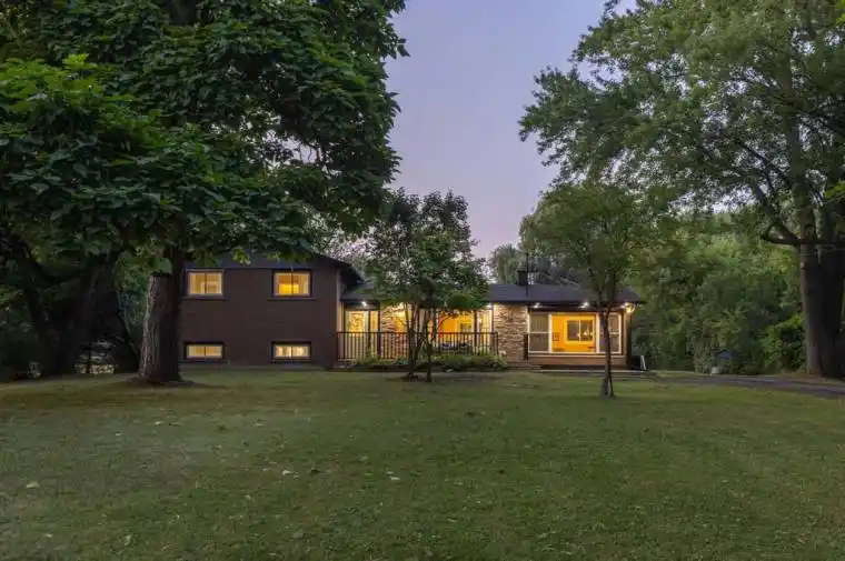 Set back from the road and known affectionately as “The Willow Pond” house, this is a 1.2-acre haven that feels miles away but keeps you close to everything that matters. You’ll feel the rhythm of life with wide open spaces, mature weeping willows, and a private pond that brings wildlife in the warmer months and skating adventures in the winter. The property stretches generously both front and back, offering quiet corners and open lawns to enjoy year-round. Whether you’re relaxing on the front porch or gathered on the back deck, the outdoor lighting casts a warm, inviting glow long after the sun goes down. Step inside the home to a welcoming foyer and a thoughtfully designed side-split layout. The main floor flows from the living room, anchored by a large window, into a light-filled dining area with doors to the backyard. The kitchen overlooks the yard and features crisp white cabinetry, stainless steel appliances, and an island that invites conversation, meal prep, or quiet morning coffee. Just off the dining space is a beautiful sitting room with wood beams overhead, a fireplace, and a picture window that frames the outdoors like a painting. With its own exterior access, this room also works well as a mudroom without losing its charm. Upstairs, 3 bedrooms offer double closets and lovely natural light, while the refreshing 3-piece bath features a deep tub, double sinks, and a large vanity. On the lower level, there’s a cozy rec room, a 4th bedroom, and another 3-piece bath with a glass shower. The basement offers great potential as a workshop or storage space, with existing shelving already in place and plenty of room to customize. 2432 Port Robinson Road is a home that inspires you to grow, gather together, and savour every season life has to offer. Updates: Fridge, Stove, Washer (2024), Windows, Plumbing, AC, Kitchen, Bathrooms, Decks, Water Supply/Waterline from Cistern (2022), Eaves & Fascia (2020-2021), Furnace (2012)