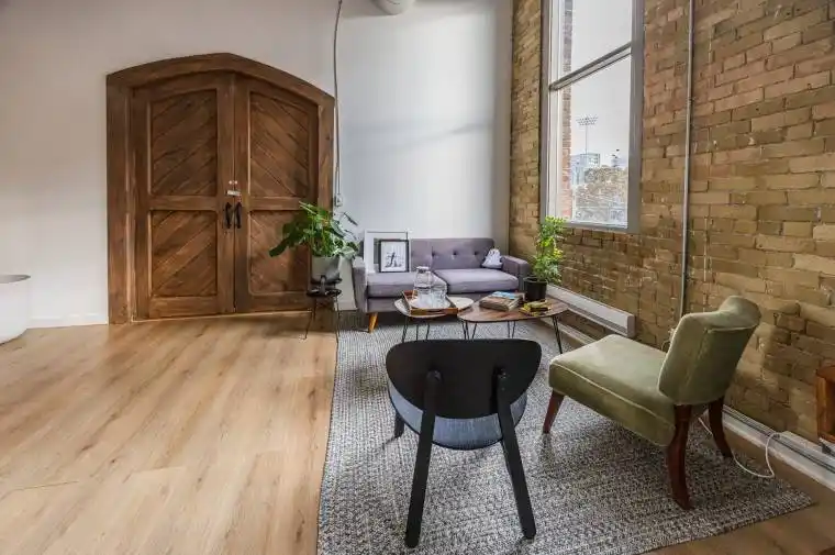 A beautiful 800 sq ft fully-private office available for rent as of October 1, 2025. Lease terms from 3 months – 3 years will be considered.Office has:- hardwood floors,- high ceilings,- large windows facing Fraser Ave. & Liberty St. that allow lots of natural light in, and- a unique wooden door in-unit, which if closed, can be used to separate the office into 2 offices (419 sq ft & 379 sq ft) if desired, or it can be left open if one larger (800 sq ft) office is desired. This gives the tenant the opportunity to create some privacy if desired.- benefits that come with being a part of The Fueling Station (coworking building/community) including but not limited to free office cleaning 3x weekly, 24/7 access to the building and building amenities that include 3 meeting rooms of various sizes, mail and reception services during office hours, high-speed Wi-Fi, printer/scanner use, free property maintenance, security on-call, access to a private parking lot (for an additional cost), and more.