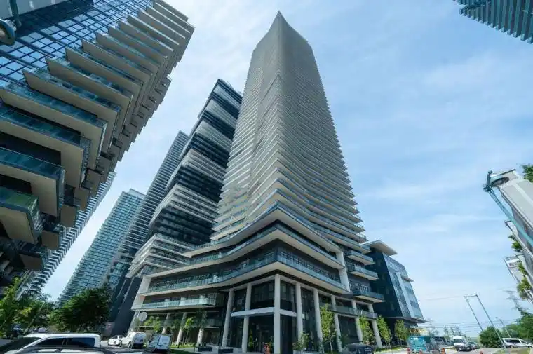 Experience modern waterfront living in this bright 2-bedroom, 1-bath condo on the 26th floor in Mimico. This 642 sq. ft. corner unit offers panoramic lake and city views, floor-to-ceiling windows, and a spacious wraparound balcony accessible from the living room and primary bedroom. Features include a sleek kitchen with built-in stainless steel appliances and quartz countertops. Steps from waterfront trails, parks, dining, transit, and with easy access to the Gardiner and Lakeshore Blvd. Includes 1 underground parking spot and a locker. Enjoy resort-style amenities: 24-hour concierge, pool, hot tub, sauna, fitness & yoga rooms, theatre, party room, guest suites, and more. Available immediately.