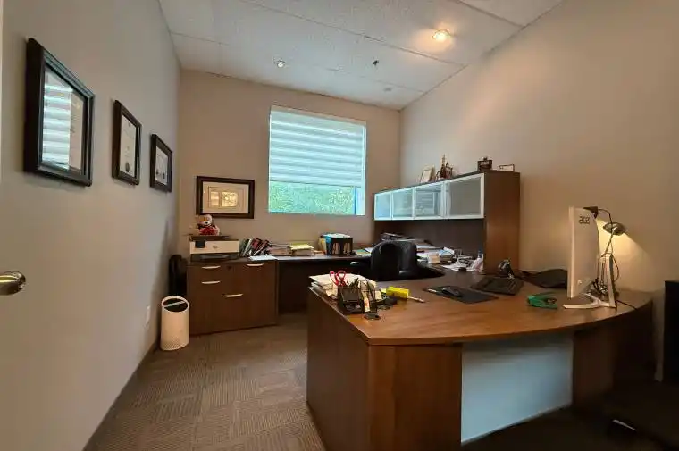 Fully furnished 120 sq. ft. office space available for sub-lease in North York. Enjoy access to shared amenities including kitchen, washrooms, reception area, and an open-concept office space. TMI, utilities (water, heating, hydro), office cleaning, and parking is included in rent. Conveniently located near Highways 401 and 407.