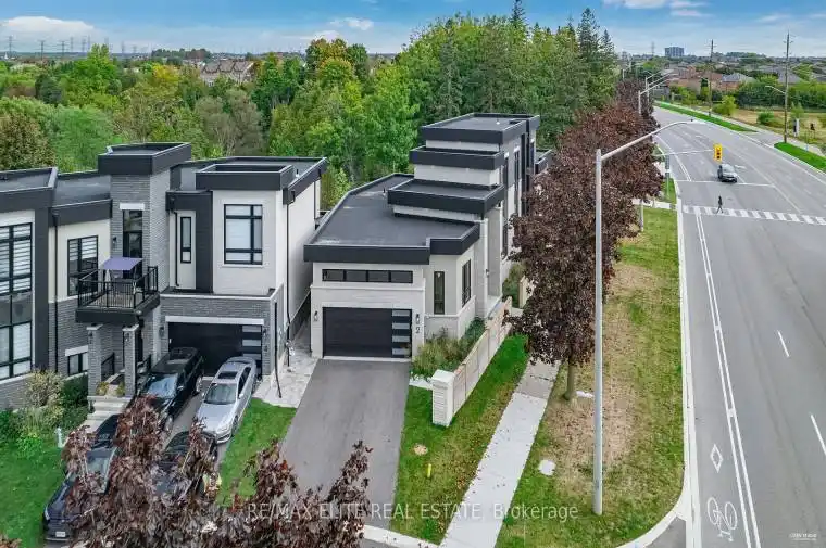 Welcome to the pinnacle of luxury living in Ajax. This rare-to-find Bungaloft residence offers 3 bedrooms, 3.5 bathrooms, and 3,204 sq. ft. above grade. Featuring soaring ceiling heights up to 12′ on the main floor and 9′ in the basement the home is designed to impress. Elegant engineered hardwood flooring extends throughout the main and second levels, while the chef-inspired kitchen showcases a stylish island, perfect for both family living and entertaining. The main floor primary suite offers direct access to a spacious covered porch, while a triple-lock entry door adds an extra layer of security. Currently in pre-construction, this home presents the unique opportunity to select your own finishes. At the buyers cost, you also have the option to finish a rooftop terrace and have access from the second floor. The 14 ft. high garage ceiling, allowing the installation of a lift a rare feature for additional parking space. The finished basement option adds 1,403 sq. ft. of living space, expanding the home to 4 bedrooms and 4.5 bathrooms, for a total of 4,607 sq. ft. of luxurious living. Nestled on a private ravine lot, this property spans nearly two acres of lush land, surrounded by protected conservation areas and backing onto Duffin’s Creek. Blending modern elegance with natural beauty, this residence is being built to the highest standards an extraordinary opportunity in one of Ajax’s most sought-after locations.