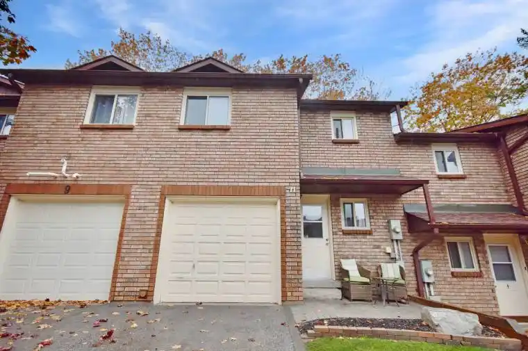 Spacious 1300 Sq Feet Townhouse With 3 Large Bedrooms, 2.5 Bathrooms + In-Law Suite! Recent Updates include New Laminate Flooring, and Baseboard Trim Throughout, Kitchen Backsplash, Foyer Tile Flooring, Freshly Painted Throughout, Oak Stars, and Railing, New Light Fixtures, Refinished Deck, Front Patio Stonework and Landscaping. Inside Garage Entry, Walkout From The Main Floor To Private Yard with Deck and Mature Trees. Great Value + Reasonable Fees. Amenities Include A Gym, Outdoor Pool + Party Room. Maintenance Fees Cover Building Exterior, Including Roof + Windows. Convenient Location, Close to Schools, Hwy, Parks and Public Transit