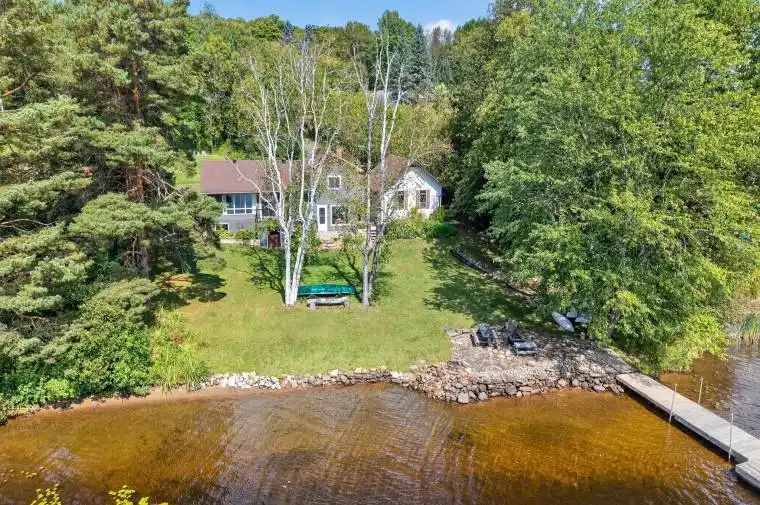 Welcome to your dream Muskoka retreat! Nestled on the sought-after Narrows in Huntsville, this beautifully renovated 4-level side split home offers the perfect blend of year-round comfort, modern upgrades, and classic cottage charm.Enjoy southern exposure and panoramic waterfront views from your expansive private dock, ideal for relaxing, entertaining, or setting off on a boat ride to explore over 60 kms of boating & four connected lakes Fairy, Vernon, Mary, and Peninsula. Whether you’re into water sports, fishing, or scenic cruising, this location delivers the full Muskoka experience right from your backyard. Inside, the home features 4 spacious bedrooms, a flowing layout perfect for families or guests, and tastefully updated finishes throughout. The main living areas are bright and welcoming, with large windows that bring the outdoors in.Additional highlights include a double car garage with loft storage, ideal for all your gear, toys, and seasonal items. Located just minutes from downtown Huntsville, youll enjoy easy access to shopping, dining, schools, healthcare, and all big-town amenities while still feeling tucked away in a serene waterfront setting.This is a rare opportunity to own a turnkey waterfront property in one of Muskoka’s most desirable locations. Whether you’re seeking a permanent residence, a vacation getaway, or an investment, this home checks every box. Recently Upgraded in 2020, Furnace 2019, 2004 existing septic replaced with fast system 0.5 visual and audio alarm system and new raised bed (bubbler system estimated value $10,000.00) documentation available, Newer Weepers Installed around Perimeter of home, 2012 additional dock elements added to dock (ramp 6 x 12 & dock 12 x20 $8017.35) documentation available.