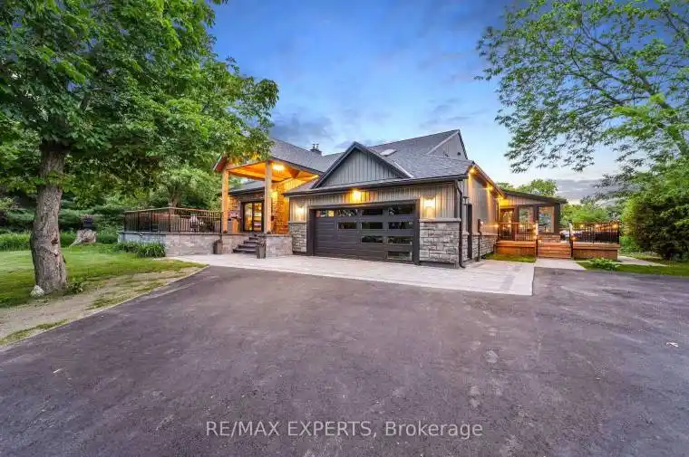 Welcome to this stunning 5 bed, 3.5 bath luxury oasis in Alliston, showcasing over 4,200 sq ft of beautifully designed living space. From the newly paved driveway and elegant interlocking stone steps to the impeccable interior finishes, every detail of this home exudes quality. Inside, you’re welcomed by natural light, striking feature walls, pot lights, and skylights throughout. The dining room includes custom built-ins and large sliding doors that open to afront deck. The heart of the home is the sun-filled custom kitchen featuring a large island, quartz countertops and backsplash, high-end appliances, oversized double-door fridge/freezer,6-burner range with griddle and 1.5 oven, pot filler, industrial LED range hood with food warmer, pullout spice racks, built-in pantry, and a coffee bar with wine fridge and sink. The open-concept layout flows seamlessly. The family room boasts a beautiful feature wall and electric fireplace, while the living room includes large windows with remote blinds. Walk out to an oversized wraparound deck with solar floor and railing lighting, double propane BBQ hookups, and generator hookup. Step down to a fully interlocked backyard featuring a pergola, stone firepit, stone garden bed, and a finished shed/office. The primary suite is a serene retreat. offering a seating area with remote blinds. skylights. Built-in TV unit, ceiling speakers, spa-style ensuite with heated floors, soaker tub, large shower, and a walk-in closet with laundry. Enjoy the attached sunroom/gym with separate entrance. Upstairs offers a spacious office, three bedrooms with remote-controlled fan lights, a stylish bath with heated floors and glass shower, and a large laundry room with walk-in closet. Home includes 5 Murphy beds for added versatility. The finished basement with separate entrance features a large kitchen with stovetop, counter vent, built-in Miele fridge/freezer, rec room, one bedroom, bathroom, and laundry. This home is a must-see.