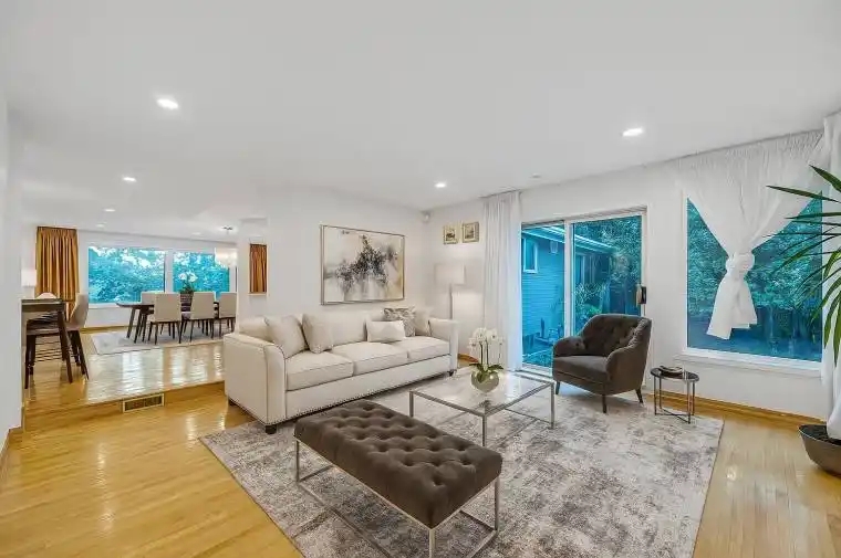Prestigious Don Mills Opportunity Rare Forested Retreat Welcome to 120 Laurentide Drive, a beautifully maintained 4-bedroom detached home nestled on an expansive, tree-lined lot in one of Toronto’s most coveted enclaves. This rare offering features a fully fenced backyard oasis ideal for families seeking privacy or builders envisioning a premium new build. Step inside to a sun-filled, open-concept main level with gleaming hardwood floors, a bright living room, and a contemporary kitchen complete with sleek cabinetry, central island, and breakfast bar. The adjoining family room showcases panoramic garden views and a walk-out to your private outdoor sanctuary. Upstairs, you’ll find two spacious bedrooms with a shared bath, plus a generous primary suite with a spa-inspired ensuite featuring a rainfall shower. The finished lower level includes a fourth bedroom with above-grade windows, powder room, laundry, and a cozy entertainment lounge with wood paneling, natural light, and a stone fireplace. Exterior highlights include a manicured front yard, elongated private driveway, and built-in two-car garage. The backyard is a true gem surrounded by mature trees, curated garden beds, and unmatched tranquility. Located in a quiet, upscale neighborhood steps from Donalda Golf Club, Don River Trails, CF Shops at Don Mills, top-rated schools, restaurants, public transit, and major highways. This is a must-see property offering lifestyle, location, and long-term potential. Note: Some interior images have been virtually staged to illustrate design possibilities.