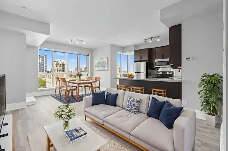 This luxury condo, located in the heart of Downtown Markham, offers a bright corner unit with 9-foot ceilings and a spacious, well-designed layout. The suite features stunning finishes, including granite countertops and mirrored backsplash. Residents can also enjoy a range of amenities, including a simulated golf room, theatre room, weight room, and more. Close To All Amenities. Situated in a well-planned community, it is within walking distance to Downtown Markham’s parks, theatres, restaurants, banks, and shopping. Steps To Grocery, YMCA, Cineplex, Pan Am Center, Plenty of transit options, Viva and Express TTC Bus to Finch At Your Doorstep, Close to Go Train, Hwy 7, 404 & 407