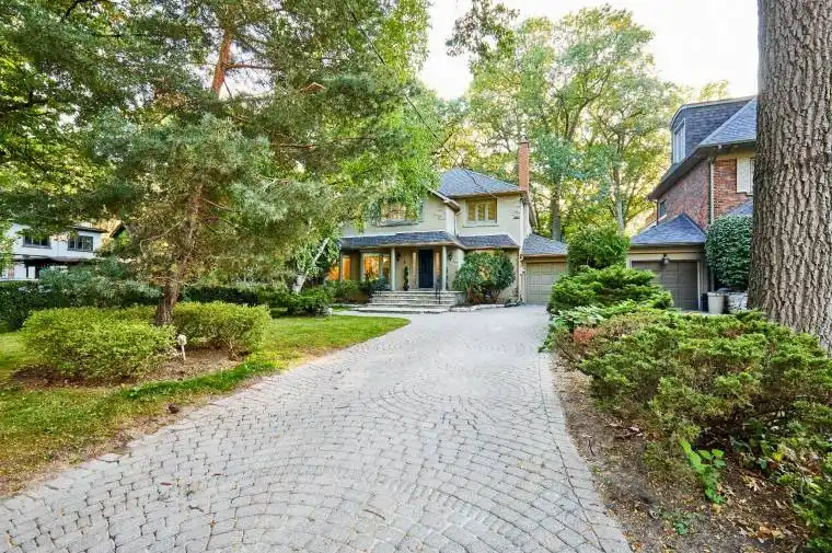 Welcome to 4 Baby Point Road – Timeless Elegance in Baby Point! Nestled on a quiet cul-de-sac in one of Toronto’s most prestigious neighbourhoods, this classic centre-hall residence blends timeless character with modern comfort. Surrounded by mature trees and landscaped gardens on a 50 x 140 ft lot, the home offers 4 bedrooms, 4 bathrooms, and 4 fireplaces. The main floor is designed for both daily living and entertaining. A sunken living room with bay windows, a west-facing picture window, and a gas fireplace creates an inviting gathering space. The private office/den, with a wood-burning fireplace and custom built-ins, is ideal for work or quiet reading. At the heart of the home, the chef-inspired kitchen with new stainless steel appliances opens to a bright family room and casual dining area wrapped in windows with a conservatory feel. Walk out to a new deck (2025) with a four-season hot tub and enjoy the west-facing garden oasis. Upstairs, the primary suite offers a serene escape with a gas fireplace, spa-like ensuite, California closets, and treetop views. Three additional bedrooms provide generous proportions, garden outlooks, and ample storage. The finished lower level adds versatility with a large games/media room, built-in shelving, 3-piece bath, laundry, cold storage, and a side entrance – perfect for nanny or in-law suite potential. Additional highlights include a tandem garage suited for cars, a studio, or a workshop, a private interlocking brick driveway, and professionally landscaped gardens. Just steps to the Humber River, trails, and TTC, this home is minutes from Baby Point, Bloor West Village, and The Junction. Residents enjoy access to the exclusive Baby Point Club with tennis, lawn bowling, and year-round community events. With excellent schools, quick highway and airport access, and an unparalleled setting, this is a rare opportunity to own a forever home in Baby Point.