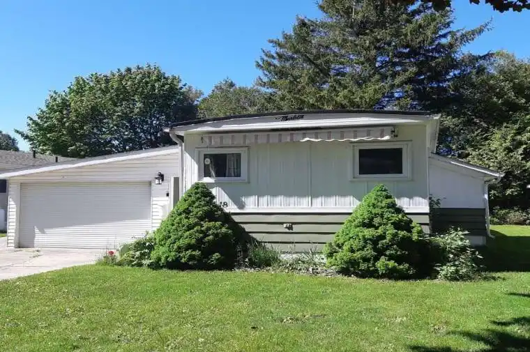 For more info on this property, please click the Brochure button. This updated year-round mobile home is located in Huron Haven Village about 5 kms north of Goderich, Ontario, just off Hwy 21 & about 1 km east of Lake Huron. Most residents are age 55 plus (not a requirement). This charming, well-kept 2-bedroom home w/4-pc bathroom & 100-amp service, features newer: high efficiency furnace, central air, electric water heater, electric stove/fridge/washer/dryer, laminate/vinyl flooring & more. Includes an over-the-range microwave w/vent fan/roof exhaust. A beautiful enclosed 3-season sunroom added in 2019, is 12 ft x 10 ft (not incl. in sq. footage) & has access from in/outside home. There are 4 parking spots outside. A single oversized attached garage is 23 ft 6 in x 14 ft 5 in (not incl. in sq. footage), has 1 parking spot, a built-in workbench & storage areas. The lovely yard, bordered at back property line by mature trees, also includes a garden shed. Pls. note Sutton Drive was freshly paved in early Nov. 2025. About a 10-minute walk, a newer recreation hall for residents was opened in 2023 & an outdoor pool in 2024. Located in the Municipality of Ashfield-Colborne-Wawanosh in Huron County, the wonderful community of Huron Haven is a short drive to many places & activities, including beaches, golf courses, a provincial park and shopping. New lease monthly land lease fees: Rent of $625, water/sewer flat fee of $75 & estimated lot & structure taxes of $42.87. Transfer of lease may also be possible, with monthly rent of $510 (the same monthly water/sewer flat fee/taxes).