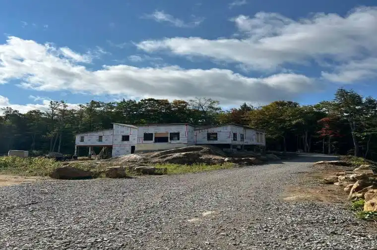 New, under construction spacious 3,150 SF custom bungalow with 4 bedrooms, 3.5 bathrooms, on 10.34 acres. This home is built on solid bedrock & powered by wind and solar. Kitchen and bathroom walls & floors are Italian porcelain slabs. Large kitchen has Italian cabinets, Miele appliances, Italian designer fixtures with walkout to a deck on one side and a 480 SF courtyard on the other. Quality Italian engineered white oak flooring with inlays, high sloped ceilings, large windows & doors, 3-way fireplace with gold leaf imprinted porcelain, wrap around deck, media room, Douglas fir ceilings and a lap pool/ spa combo in the courtyard offer you luxurious surroundings. Radian heating with HRV system, pellet stove with silver leaf imprinted porcelain, split air conditioning, and polyurethane closed cell spray foam insulation to keep you warm or cool. Bedroom 1 & 2 have 8 FT closets. Bedroom 3 has 12 FT closet, 4 pc bathroom. Primary bedroom with a large ensuite w/ steam shower, 6 ft deep bathtub, his and hers vanities and wash basin. Primary 8′ x 12′ bath offers and oversized tub, 4′ x 4′ shower, 8′ vanity with double sinks. Long winding treed drive and pond. Standing seam metal roof with cedar soffit & facia. Well is 157′ deep well supplying 30 gal / minute. This is a must see great new home with privacy.