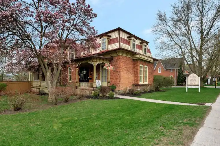 This large and lovely family home features 5 bedrooms and 2 full bathrooms plus 2 half-bathrooms. It boasts nearly 3,500 square feet of finished living space in the designated Core area of Brighton, conveniently located on a premium spot on Main Street. Situated at the corner of a quiet side street, this home has undergone significant updates in the past 10 years that enhance its appeal. Key features include a sturdy metal roof, a newer front roof, and stylish vinyl mansard shingles that contribute to its charm. Many of the windows have been upgraded, and the exterior walls and kitchen addition are well-insulated with spray foam insulation for energy efficiency and comfort. The mechanical systems have also seen upgrades, including on-demand hot water, two natural gas furnaces, and air conditioning, ensuring comfort throughout the year. The double garage and additional parking for up to six vehicles provide ample space for family, friends, or clients. This versatile property can easily be converted back into a duplex or used as a profitable Airbnb right in the vibrant heart of Brighton, with all necessary amenities nearby. The large lot indicates that a severance at the rear may be possible without a variance, though potential buyers should verify this with the Planning Department. Those who have viewed the interior often remark on the unique blend of historic character and charm combined with modern updates. The oversized lot offers considerable privacy on three sides, thanks to mature hedges, flowering trees, and established foundation trees. This is one of Brighton’s most iconic properties, inviting you to be a part of Brighton’s history. Please join us on Sunday, September 28th, 2025 for a special Applefest Weekend Open House!
