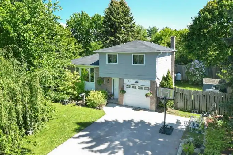 Welcome to Rosemont. This property boasts a private, treed and landscaped lot with 3 + 1 bedroom side split featuring a built-in garage with direct entry to the home. The open concept main floor showcases a spacious kitchen, dining and living area ideal for large gatherings. A separate family room offers a cozy ambiance with a fireplace and walkout to covered patio. The upper level features 3 large bedrooms and a 4pc bathroom. The lower level has a 4th bedroom and a recreation room perfect for a games area. The very private backyard provides ample space for outdoor activities. A double paved driveway completes this property, located just minutes west of Alliston.