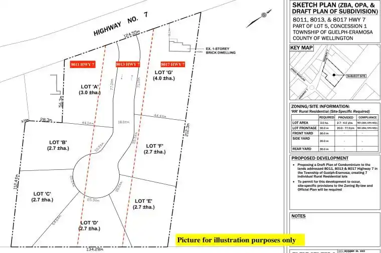 This spacious 2.2-acre vacant lot fronting on to Highway 7, offers a prime opportunity to build your ever wanted dream home or invest in for the future commercial/industrial potential, established neighborhood. Situated on Highway 7 with easy access to electricity, and gas. The lot features level terrain with few trees front, providing natural privacy. Zoned Residential, it allows for single-family construction and possible accessory structures. Conveniently located just 8 minutes from Guelph University and downtown , schools, shopping, and parks. Dont miss this ready-to-build parcel in a fast-growing area of Guelph! adjusting lot of approx. 1.8 acres for sale as well.