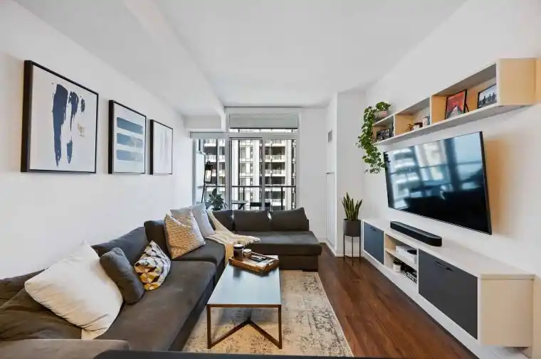 Wake up to floor-to-ceiling windows that fill your home with natural light. This bright and spacious 1 bedroom + Den at Post House Condos is designed for modern downtown living. The open-concept kitchen and living space flow seamlessly together, creating the perfect spot to cook, relax, or entertain. Step out to a large 105sqft balcony and enjoy fresh air and an open city vibe. The den offers flexibility whether its a home office, reading nook, or guest space, it adapts to your lifestyle. Every closet has been upgraded with custom California Closet built-ins, making organization effortless. Smart Home ready with Lutron’s Caséta Wireless systems smart hub, light switches and custom window coverings. Control everything seamlessly from your phone, Amazon Alexa or Google Assistant. Stylish upgrades include a new kitchen faucet, new bathroom shower system with upgraded tiling. All of this is set in one of Torontos most vibrant neighbourhoods. Just steps from the St. Lawrence Market, the Financial District, TTC, and the Waterfront, you’ll have the best of the city at your doorstep. This is where style, convenience, and comfort come together your downtown story starts here. Rental Parking Spot Available, Locker is Owned!
