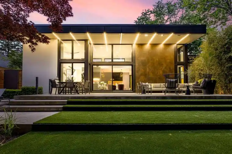 This Genius custom-built bungalow has nearly 4,900 sq. ft. across two flawless levels, with 3+1 bedrooms and 4 baths. Every inch is designed to impress: soaring 15-ft ceilings, radiant heated concrete floors with individual sensors, retractable steel security blinds, and full Genius Home Integration that gives you effortless control over lighting, Sonos, climate, and security. The kitchen redefines luxury – seamless design, world-class function, and undeniable presence. Double ovens, a barista station, sparkling/flat water on tap, a striking wet bar, and custom cabinetry throughout. Outdoors, the innovation continues with a full-property snow melt system, a heated oversized patio, faux turf for effortless maintenance, a bamboo courtyard, gas fireplace, and built-in acoustic speakers-crafted for year-round entertaining. The lower level transforms into a private club: a granite-clad wet bar with dishwasher, guest suite, versatile family room, and a tiered theatre with a power-sliding door, 10 screen, and surround sound. An elevator connects it all -from the basement to a rooftop oasis unlike anything else. The primary suite is pure serenity. Overlooking a private bamboo courtyard and outdoor fireplace, it offers a spa-like ensuite featuring a deep soaker tub, Toto wash-let toilet, and floor-to-ceiling stained-glass window. This residence redefines what it means to live without compromise, blending luxury, technology, and design into one unforgettable experience. Follow your dream, home.