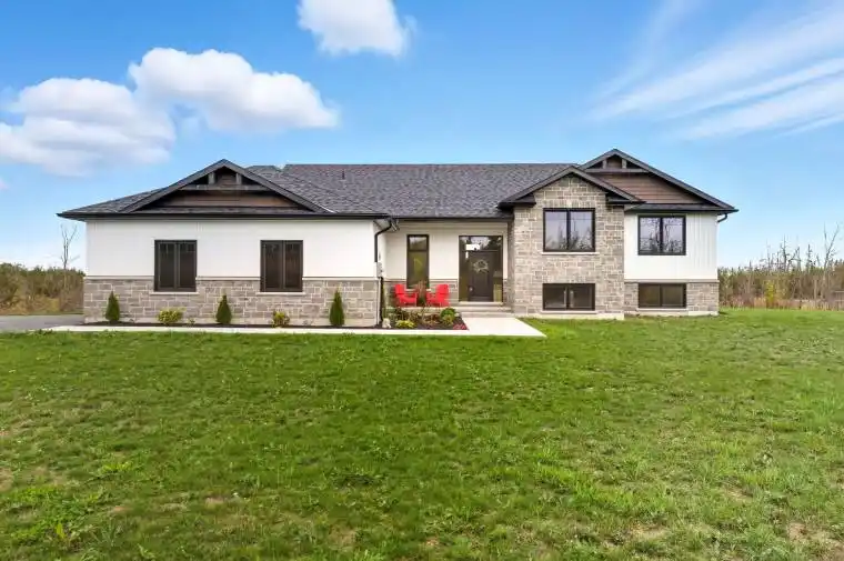 Welcome to this recently built modern home that speaks for itself, 3557 Blessington Road, a 3+2 bed, 3 bath raised bungalow where thoughtful design and timeless craftsmanship come together. Step inside to soaring vaulted ceilings, wide plank flooring, and natural light pouring through oversized windows. The heart of the home is the open-concept living space, where a floor-to-ceiling stone fireplace anchors the room and flows effortlessly into a custom Irwin kitchen featuring quartz countertops, a tile backsplash, sleek black stainless appliances, and a magazine-worthy island for gathering. Walk out to your covered, screened-in deck with added stairs, perfect for dinners and enjoying panoramic country views. The lower level offers a spacious rec room with large windows, creating a bright and inviting space. There is potential to easily add two additional bedrooms, making it ideal for growing families, guests, or a home office setup. Outside, the landscaped yard is a private retreat with plenty of room to create the backyard of your dreams. The primary suite is a peaceful escape with a spacious walk-in closet and a spa-like ensuite complete with a custom glass walk-in shower and elevated finishes. Perfectly located just 10 minutes to Hwy 401, 20 minutes to Belleville or Napanee, 35 minutes to CFB Trenton, and 45 minutes to Prince Edward County. Whether you’re after wineries, motorsport thrills, or pure rural calm, this address quietly puts it all within reach.