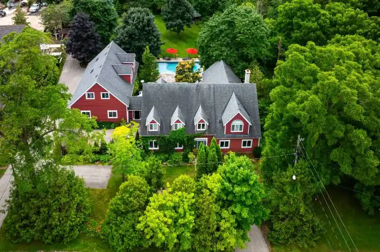 Discover one of Elora’s best-kept secrets – an exclusive street with only six homes, tucked away in a quiet and private setting, yet just minutes to downtown. This exceptional property with mature trees and a forest at the rear offers a rare blend of space, character, and natural beauty, set on over an acre overlooking the river gorge. The completely fenced backyard is ideal for children and pets, with an in-ground pool, courtyard, stone wall, and numerous private sitting areas to enjoy.The large 4-bedroom home has evolved beautifully over time – carefully renovated and expanded creating multiple living areas to suit todays lifestyle. Highlights include a great room with soaring 18′ ceilings and a wood-burning fireplace, gorgeous wide soft pine plank flooring, and a family room with gas fireplace that could easily convert to a main-floor bedroom with ensuite potential. A one-bedroom in-law suite offers flexibility for extended family or guests.Outdoors, a detached 20′ x 40′ barn sits at the rear of the property, perfect for storage, hobbies, or workshop space. The 4-car garage with 12′ ceilings and driveway parking for 15 ensures plenty of room for vehicles and toys.Families will appreciate the proximity to highly regarded Salem Public School – a key reason the current owners chose this location years ago. This is more than a home – it’s a lifestyle, offering privacy, natural beauty, and the warmth of a unique residence in one of Elora’s most desirable and little-known settings.