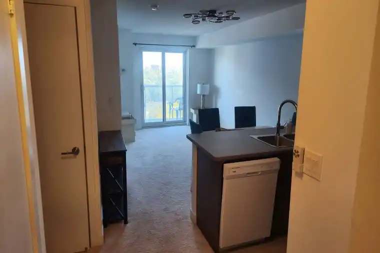 Immaculately maintained 1+1 bedroom unit in the Danforth Village Estates! This bright suite offers open-concept living and a balcony with unobstructed view. The kitchen is equipped with stainless steel fridge, induction oven, microwave and a breakfast bar. The primary bedroom is partially furnished, a good size den is setup for home entertainment with a 70″ Smart TV . Enjoy the convenience of in-suite washing machine. Building amenities including an exercise room, party room, bike storage, and paid visitor parking. Close to TTC bus stop, Eglinton GO, schools, parks, trails, and shopping. This unit is partially furnished, please see attached list.