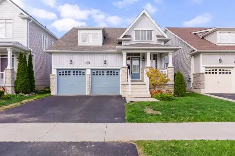 BUNGALOW – Beautiful “Hogan” model features 9′ ceilings, laundry, 2 bedrooms & 2 bathrooms all on one level. Located in a fantastic neighbourhood next to the Lindsay Golf & Country Club, Victoria Rail Trail & across the street from Logie Street Park which features a lovely playground, splash pad & walking trails! The open concept living room is centred around a natural gas fireplace. The eat-in kitchen features quartz countertops & a nice centre island with optional seating plus a walk-out to private backyard, spacious deck and fully fenced yard. Lovely hardwood flooring throughout & stylish California shutters on most windows. The main floor primary bedroom has its own ensuite complete with quartz countertops and a walk-in tiled shower. Entrance from the double car garage directly into the home. The full height unfinished basement provides plenty of storage space with the possibility of additional bedrooms & living space. Outback you’ll find a furnace, AC & roof shingles installed 2014.