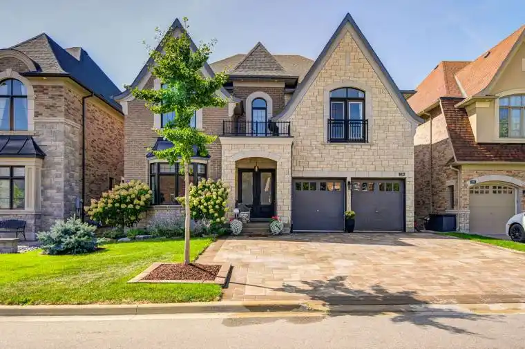 **R-A-V-I-N-E** Welcome to this exceptional residence in Upper West Side, a prestigious community in Upper Thornhill. Set on a premium pool-sized lot backing onto a picturesque ravine! – the perfect blend of luxury and nature! This home offers over 5600 sq ft of elegant living space included basement. 4+1 bedrooms and 6 bathrooms. The main floor features soaring 13-foot ceilings in the kitchen & family room, 10-foot throughout; 9-foot on the 2nd floor and basement. The heart of the home is a gourmet kitchen with premium appliances, additional servery and spacious pantry. Custom cabinetry, quartz countertops, oversized waterfall island. Breakfast area walks out to new composite deck. Family room fireplace framed with custom cabinetry. Solid 8ft doors, crown moldings, pot lights. Large formal dining room. Upstairs the home boasts 4 generous bedrooms, each with their own ensuite for privacy and comfort for family and guests. The primary suite is a private retreat with fitness room; spa-inspired 6-piece ensuite with dual vanities, a soaker tub, a glass-enclosed shower with steam, and generous size walk-in closet. Second floor laundry for everyday comfort. The lower level enhances the home with large recreational space, wet bar, 2-piece bathroom, bedroom, shop room with storage. Built-in speakers. A massive interlock patio leads to a beautiful perennial garden, creating a private oasis for outdoor living and relaxation. Sprinkler system, composite fencing. Landscaped/interlocked front. Exterior pot lights. A spacious three-car tandem garage and parking for up to 8 vehicles. Here, you’ll be part of a vibrant community, with scenic trails at your doorstep and an excellent school right on the street **Viola Desmond Public School** shopping, dining, access to major routes and transit.