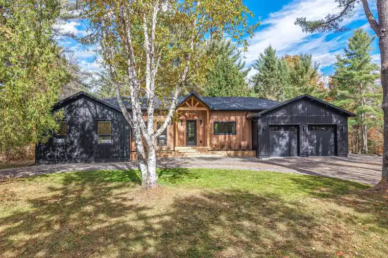 In the prestigious community of Huntsville, this home is your gateway to a dynamic lifestyle, complete with trendy restaurants, parks and cultural hotspots. A striking blend of luxury and modern design set on 4.3 acres of pure treed serenity. Enjoy over 2000 sq. ft of one floor living, .this bungalow has been tastefully renovated with sleek finishes such as engineered hardwood throughout and floor to ceiling windows that flood the space with natural light. Step onto your covered back deck and enjoy your morning coffee surrounded by breathtaking views and peaceful wildlife. Some major upgrades include 1100 sq ft addition with a heated double car garage, new septic system, furnace, air conditioning, HRV system, kitchen, bathrooms, windows, doors, covered deck, eaves, soffit, facia, roof, siding, property grading and new crushed granite circular driveway. Sit back, relax and enjoy this home for years to come. Don’t miss your chance to own this one-of-a-kind sanctuary – book your private tour today!