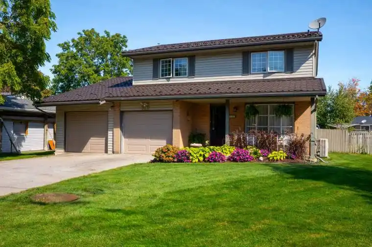 Welcome to this stunning 5 bedroom, 2.5 bath home nestled on a beautifully landscaped lot just three blocks from the sandy beaches. Located in a quiet, family friendly neighbourhood, this property is just steps away from a playground and scenic walking park + trails, offering the perfect blend of relaxation and convenience. The upper level features 4 spacious bedrooms, including a bright and airy primary suite, along with a full bathroom. Ideal for a growing family or hosting guests. On the main level, enjoy an open concept layout that seamlessly connect the modern kitchen, dining area and living room. A stylish 3-way natural gas fireplace adds warmth and ambience, perfect for cozy evenings or entertaining. Sliding doors off the eating area lead directly to the private backyard oasis, complete with an in ground pool that has a 10′ deep end and a 3.5 foot shallow end. Additional features include an attached double car garage, offering plenty of storage space along with 2 tool sheds. Generator is connected to everything but dryer and oven. The two way fireplace on main level + the gas fireplace in lower level heat the home. Present Seller rarely uses the electric heat.