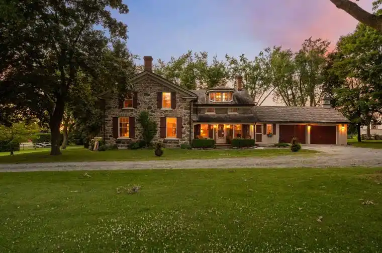 Welcome to Stonecroft Farm a rare and storied estate where history, architecture, and natural beauty converge in timeless harmony. Built in 1861 by the master stonemasons who crafted the Rideau Canal, this exquisite Ashlar Stone farmhouse is a living work of art. The home’s restoration was the final project of renowned Canadian heritage architect Peter John Stokes, who thoughtfully reimagined the chimneys, Scotts Bay dormers, front porch, and crown mouldings to honour its origins with enduring elegance. Set on just over 50 acres of rolling countryside with 39 acres currently under cultivation, Stonecroft offers both income potential and rural serenity. Just minutes to the charming communities of Sunderland and Uxbridge, you’re close to amenities while tucked into a world of your own. With 4+1 bedrooms and 2 bathrooms, the residence exudes character and peace. The dormered upper bedroom, once two rooms, is flooded with natural light and treetop views. Each window frames breathtaking scenes, fruit trees, lush hedges, and uninterrupted vistas. The handcrafted black walnut staircase railing, sourced from a tree once rooted on the land, is just one of many bespoke details that speak to the soul of the home. Surrounded by 12-foot privacy hedges and expansive gardens, this is a retreat for those who crave stillness, tradition, and natural wonder. Have morning coffee on the side porch, as the seasons shift and wildlife stirs, is nothing short of a gift. Stonecroft has borne witness to a legacy of memories: children born within its walls, brides descending the grand staircase, winter sleigh rides, and carefree summers chasing kites through fields. With original millwork, a classic cedar shake roof, copper eaves & downspouts, wide-plank wooden floors, and ingenious storage spaces throughout, this heritage home offers not just space but a sense of provenance. Stonecroft doesn’t just hold memories it welcomes you into its lineage. A home where you don’t just live, you belong.