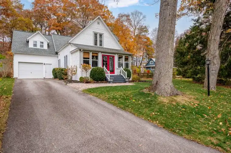 Welcome to the privacy and tranquility of exclusive Point Abino, where you can truly relax and unwind. This beautifully updated home sits on a generous lot and offers three comfortable bedrooms and two bathrooms, nestled among peaceful woods with shared access to a private sand beach on the west shore. The bright, spacious kitchen features a center island and a large dining area, with two sets of French doors opening onto a deck that’s perfect for entertaining loved ones. You’ll find special touches throughout, including a cozy stone fireplace, gleaming hardwood floors, vaulted ceilings, an inviting enclosed front porch, and convenient laundry nearby. Upstairs, the large primary bedroom includes a lovely sitting room, with two additional bedrooms and a spacious bonus room above the attached garage – perfect for movie nights or family fun. Main floor Den and office could be used for additional bedrooms. The property is beautifully landscaped with mature trees and a wide, welcoming lawn, ideal for gatherings and celebrations. You’ll also enjoy being close to the Buffalo Canoe Club, Yacht Club, and Bertie Boat Club. Whether you’re looking for a year-round home or a peaceful getaway, this charming house and its gorgeous surroundings are ready for you to create wonderful memories. Come Take A Peek!