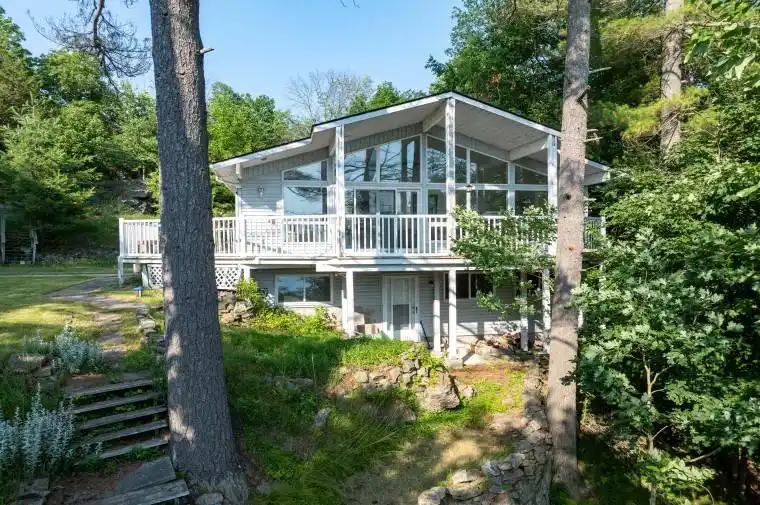 Lakefront retreat on beautiful Opinicon Lake! This property is located at the end of a private lane and includes a 4-season cottage or home, a 2-car detached garage and an additional building that could be used as a storage shed or bunkie. The lot is 1.5 acres in size and offers a private setting with elevated westerly views over the lake perfect for enjoying sunsets! The house has been nicely updated and features 1 bedroom on the main level and 3 bedrooms on the lower level as well as a full bathroom on each level. The main level also has cathedral ceilings, a gorgeous wood burning fireplace and a large deck. The main area is open and bright with large windows bringing in the sunshine. In addition to the bedrooms and bathroom on the lower level, there is also a family room, utility room and walkout basement. The home is serviced by a drilled well and septic system and heated with a propane furnace as well as the wood-stove. Opinicon Lake is part of the historic Rideau Canal System and offers great boating, swimming and fishing opportunities. The lake also is home to Queens University Biological Station, James H. Fullard Nature Reserve and The Opinicon Resort. This is a fantastic opportunity to own a waterfront property on the Rideau System!