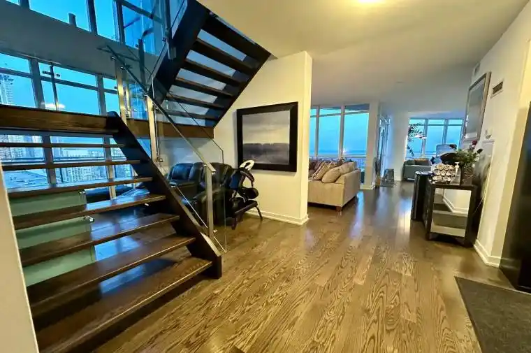 Living In A Luxurious, One Of A Kind Penthouse Loft Unit With A Spectacular Lake View. 20 Feet Open Above Family Room With Floor-To-Ceiling Windows Throughout. Top $$$ Upgrade With Hardwood Flooring & Built-In Miele Stainless Steel Appliances. Amazing Amenities Including 24 Hour Concierge, Gym, Theatre Room, Indoor Pool, Squash, Spa, Lounge, Etc.