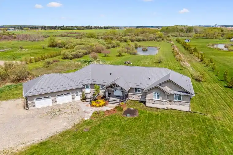 Two homes, one property. Endless possibilities.Imagine a place where grandparents can have their independence while staying close to grandchildren. Where adult children can build equity while helping with family expenses. Where everyone gets privacy, but no one feels isolated.This isn’t your typical home. With 2800 sqft of main floor living space plus the ability to develop over 2000 sqft more in the basement it’s a thoughtfully designed solution for families who want to live together, better.What makes this special?Main Home: Your primary living space features soaring cathedral ceilings, a stunning custom kitchen by Almost Anything Wood, and three bedrooms including a spa-like primary suite. Included are an additional 2 bedrooms finished in the basement. Step outside to your two-tier deck overlooking a private pond and mature trees.In-Law Suite: A completely separate main floor living space with its own entrance, full kitchen, 2 bedrooms, and luxury bathroom. Perfect for aging parents, adult children, or rental income.Bonus Space: The walkup basement is ready for your vision home theatre, gym, office, or additional bedrooms. The possibilities truly are endless.Location that works for everyone: Just 40 minutes to Waterloo’s tech corridor, 15 minutes to charming Fergus and Elora, yet tucked away on 10 private acres with a natural pond where kids can roam and adults can breathe.This home was designed for families who understand that living together doesn’t mean sacrificing independence. It’s where multiple generations can thrive under one roof or rather, two connected roofs.