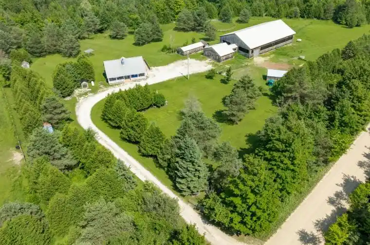 Top 5 Reasons You Will Love This Home: 1) Set on 21.2 scenic acres, this property is a horse enthusiast’s dream, featuring four large paddocks, a roundpen, and a 60×100 built by Denco indoor riding arena (2018) connected to a well-kept three-stall barn and tack room (2016) 2) Surrounded by mature forest for privacy, enjoy peaceful views, a spring-fed pond, and relaxing mornings on the wraparound deck or covered front porch 3) The four bedroom raised bungalow offers a tastefully updated kitchen with quartz countertops, a spacious island, vaulted ceilings, stainless-steel appliances, and large newly updated windows that fill the home with natural light 4) The primary bedroom features a stylish ensuite with a walk-in shower and double vanity, while the basement includes cozy living space and a walkout to the backyard, plus added peace of mind from a recently installed Generac generator and newer windows and doors 5) Conveniently located near Highway 10 and just minutes from Markdale, with access to local shops, cafés, skiing, golf, and beautiful recreational trails. 1,320 above grade sq.ft. plus a finished basement.