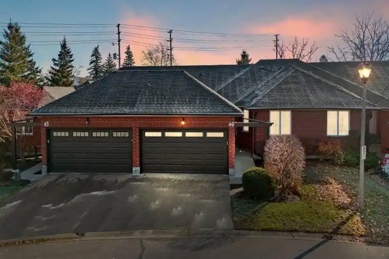 Easy Living in a Quiet, Private & Well-Kept Community. Discover the perfect blend of comfort, convenience, and low-maintenance living in this beautifully cared-for 1400 square foot bungalow-style condo in desirable North Galt. Offering 2 bedrooms, 3 bathrooms, and a double car garage, this home is designed for those who value easy main-floor living-with all exterior maintenance handled for you. Inside, the bright open-concept layout welcomes you with seamless flow between the kitchen, dining, and living areas-ideal for both everyday living and entertaining. French patio doors lead you to a private rear deck, enhanced with an electronic awning (2022) for effortless outdoor enjoyment in sun or shade. Both bedrooms are spacious and filled with natural light, complemented by two full bathrooms on the main level, including a convenient main-floor laundry setup. The fully finished lower level expands your living space with a generous recreation room-perfect for movie nights or hosting guests-along with a powder room, a secondary laundry room, and a large utility/storage area. Recent upgrades include, New vinyl flooring in the kitchen & bedrooms, Furnace (2016), Water softener (2022), Updated double garage door (2025), Parking for up to four vehicles-a rare bonus in condo living! Set in a peaceful pocket close to shopping, everyday amenities, and quick highway access, this home offers the ultimate convenient living. With landscaping and snow removal included in the condo fees, you can spend more time enjoying life-and less time maintaining it!