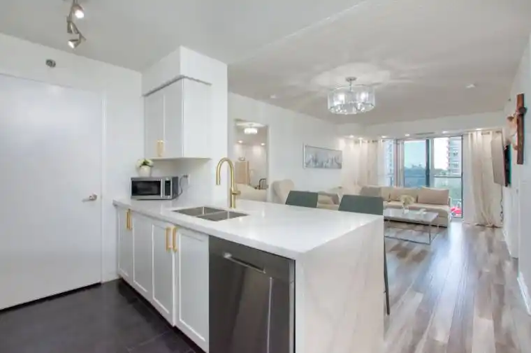 condo living at its best ! south-facing CN TOWER view .Newly renovated kitchen, beautiful marble countertops and new cabinetry. Open concept unit New Pot light fixtures throughout. Huge pantry room . includes owned Premium parking Spot& Owned Premium Large Locker .steps to public transit, library, school, Lawrence plaza, Yorkdale mall HWY401&Allen Rd