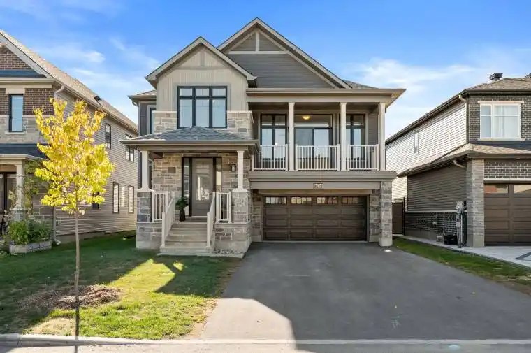Step into luxury living in Manotick’s prestigious Mahogany community! This stunning 2024-built Noble model offers an impressive 3,262 sq. ft. of above-grade living space with modern design and elegant finishes. The main floor welcomes you with an upgraded tiled foyer and a stylish front room-ideal for a home office or quiet retreat, gleaming hardwood floors, 9-ft ceilings, and an open-concept great room filled with natural light. The chef’s kitchen is a true highlight, featuring upgraded two-tone cabinetry, quartz countertops, high-end appliances, a large island perfect for gatherings, and a butler’s pantry connecting to the formal dining room. Upstairs, a dramatic sunken family room with 11-ft ceilings opens to a large front balcony-an ideal spot for morning coffee or evening relaxation. The upper level includes four bedrooms and three bathrooms, with two ensuites and a Jack-and-Jill bath, plus the convenience of second-floor laundry. Smooth ceilings throughout add a touch of sophistication. The unfinished basement, with large windows and 9-ft ceilings, offers endless potential for your dream recreation space, gym, or theatre. Ideally located close to Manotick Village shops, cafés, restaurants, top schools, and the Rideau River, this home blends village charm with contemporary luxury. View it today and get ready to fall in love!