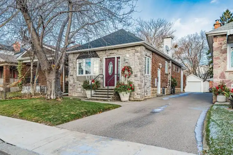 You won’t find another home this unique in Etobicoke under $900K. Meticulously maintained and cherished by the same owners for around 35 years, this property is a rare opportunity for the most discerning buyers. The standout feature is the spectacular kitchen, showcasing an impressive 14-foot vaulted ceiling and skylight galore – a true architectural surprise you’d never expect from this charming bungalow. The front of the home feels like a stylish New York apartment, featuring exposed brick, warm wood beams above and a large west-facing bay window perfect for catching the summer sunsets near the fireplace. At the rear, the atmosphere shifts to a cottage-like retreat. You’ll enjoy lush backyard views (with eastern early morning sunlight) and direct access outdoors, ideal for summer BBQs, late-night hangouts, or movie nights under the stars. This area can also function as a versatile office, an oversized closet for the adjacent bedroom, or a private media nook – offering a perfectly balanced separation of spaces throughout the home. The basement remains unfinished and is ready for your custom vision. Outside, enjoy a beautifully landscaped garden and the convenience of a detached 1-car garage. Let’s not forget the location, ~550 m to Prince of Wales Outdoor Rink, ~ 1 kilometer away from Rotary Peace Park as well as Cliff Lumsdon Park which has lawn bowling, an outdoor pool, tennis courts, and a baseball diamond! Let’s not forget Colonel Samuel Smith Park with countless trails, water views and great future memories with the family! Don’t delay, have a look today!