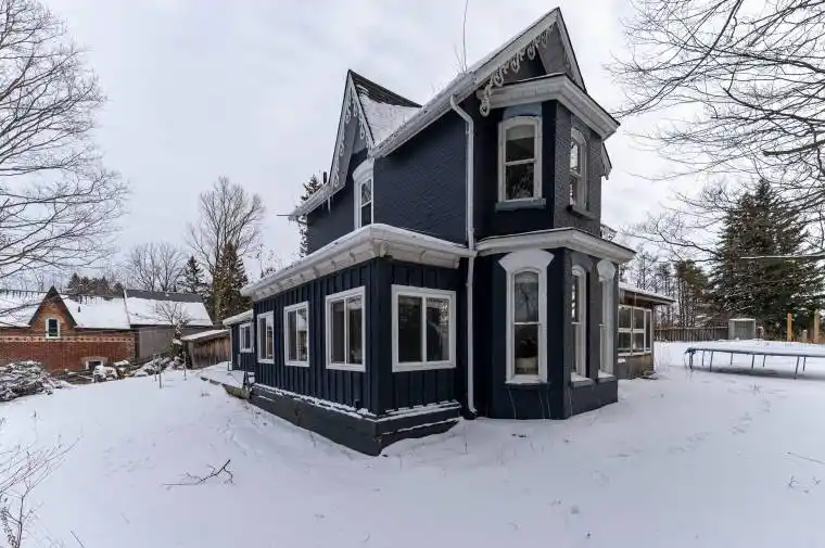 High St. & High Charm. Overlooking the storybook village of Hornings Mills, this Victorian century manse brings all the old-world character you wish modern builds still had. Original baseboards, pencil windows, a bow window that practically poses for portraits, and doors with more history than your favourite podcast. Sitting on 1.35 rolling acres, the property comes complete with a pool for summer lounging and space that’s just begging for your personal touch. Inside, it’s ready for someone with vision to breathe new life into its timeless bones. There’s a separate stone Coach House offering endless flexibility, an artist’s workshop, studio, or that charming guest suite you’ll totally keep just for friends. And if you’re craving winter vibes, you’re in luck, this spot makes the perfect chalet, located just minutes from some of the area’s best ski clubs. Lower lot can also be severed