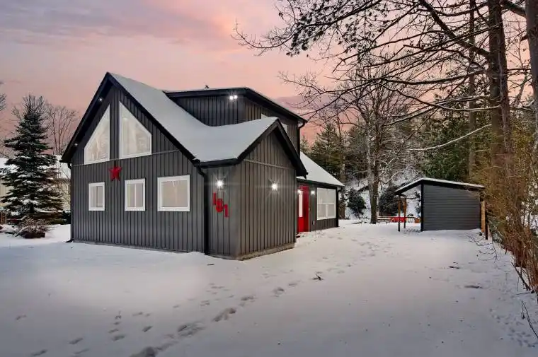 Experience Tranquil Riverfront Living in Wasaga Beach. Welcome to complete serenity on the peaceful, slow-moving section of the Nottawasaga River in Wasaga Beach. This newly built, 1,300 sq ft, year-round home offers 3 bedrooms and 2 bathrooms, showcasing contemporary design and exceptional attention to detail. Nestled among custom homes and cottages in a quiet, friendly neighbourhood, this property promises a perfect blend of privacy and community. Step inside to an open-concept layout where minimalist design meets stunning panoramic river views visible from both the main floor and the loft. The gourmet kitchen features Caesar stone countertops, stainless steel appliances, including a gas stove, and flows seamlessly into a cozy dining and living area with riverfront vistas. Ascend to the striking primary loft bedroom, complete with a luxurious 4-piece ensuite bath and breathtaking views. Built with quality in mind, the home includes radiant in-floor heating, 200-amp service, on-demand hot water, and ductless heating and cooling systems for year-round comfort. Step outside into your private backyard oasis. Multiple decks including one by the waters edge make it ideal for outdoor entertaining, relaxation, and soaking in nature. A charming bunkie provides additional space for guests, hobbies, or a home office. Enjoy direct river access for kayaking, canoeing, and some of the areas best fishing. All of this while being just minutes from Wasaga Beachs amenities, including sandy beaches, parks, hiking trails, and more. Your peaceful, stylish riverfront retreat awaits.
