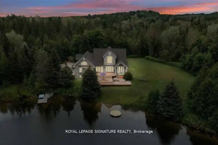 Welcome to this beautiful 4+2 bedroom 5 bath home sitting on almost 7 acre property offering the best of both worlds, a beautiful family home and that cottage that you have dreamed of. A rare opportunity to own this incredible home situated on a pristine property with its very own swimming pond perfect for kayaking, paddle boarding and fishing with the kids in the summer. As you enter the home you will be in awe of the bright and spacious open concept living area and an incredible water view. Main floor primary bedroom offers a 5 pc washroom, 4 closets and a walkout to the deck where you’re going to love watching the sunrise over the water as you sip your coffee. Large kitchen with a 10ft centre island offering tons of storage space. Newly built loft over the garage with full kitchen, living room, spa like washroom and loft bedroom offering a nanny suite or a super unique bed and breakfast opportunity. The basement features an enormous rec room, 5th bedroom and barrel sauna. Located just outside the Village of Erin and only 35 minutes from the GTA, **EXTRAS** Property Taxes Reflective Of The Conservation Land Tax Incentive Program.