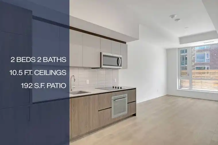 Client RemarksThis bright and well-designed 2-bedroom, 2-bathroom Wonder Condos unit offers 705 sq. ft. + 192 sq. ft. private patio. Found in Toronto’s South Riverdale & Leslieville area. The functional layout features 9-foot ceilings and laminate flooring throughout. The living room is enhanced by large windows, offering a comfortable and inviting space. The L-shaped kitchen, combined with the dining room, includes stone countertops and integrated appliances: fridge, dishwasher, cooktop, and built-in oven and microwave. The primary bedroom features walk-out access to the patio, a 4-piece ensuite, floor-to-ceiling windows, and a closet. The second bedroom is in a split bedroom layout with glass swing doors and a closet, offering excellent flexibility as a guest room or office. The rare ground-level patio provides a peaceful outdoor escape with direct access from both the living room and primary bedroom. Residents enjoy access to excellent amenities, including a gym, co-working library, pet wash station, visitor parking, kids’ playroom, partyroom, and rooftop terrace, all within a boutique building seamlessly integrated into the historic Wonder Bread Factory. Steps from Queen Street East, Jimmy Simpson Park, cafes, restaurants, and only minutes to the waterfront, DVP, and downtown core.