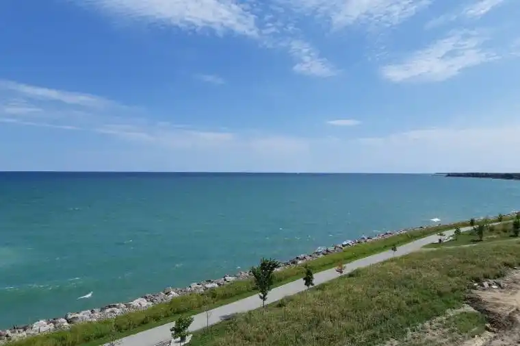 “Best Condo in Sapphire!” PENTHOUSE Living at the Lake! Welcome to Sapphire at Waterfront Trails, where waterfront living truly shines. This top-floor 2-bedroom, 2-bath PENTHOUSE suite offers the ultimate blend of style, comfort, and vacation-inspired living, every single day. Stunning Lake Views from the Balcony and Living Areas!Soaring 10-foot ceilings and a bright open floor plan create an airy, inviting atmosphere. The modern kitchen is designed to impress with quartz countertops, stainless steel appliances, extended cabinetry, and a striking backsplash, making it perfect for both everyday living and entertaining.The spacious primary bedroom features a walk-in closet and private ensuite, while the second bedroom and full bath offer flexibility for guests, a home office, or additional living space. Contemporary vinyl flooring throughout the condo, in-suite laundry, modern blinds on all windows, and stylish finishes complete the space. Every room has a window for abundant natural light!Step outside to your private extended balcony and soak in the lake breeze, or head up to the breathtaking rooftop terrace for panoramic views of Lake Ontario-spectacular sunrises and sunsets included.This well-managed building offers premium amenities including a fully equipped gym, party room, bike storage, guest suites, and geo-thermal heating and cooling. Enjoy 1 underground parking space (#116) and 1 locker conveniently located on the 6th floor (locker number to be confirmed).Located steps from the Waterfront Trail, beach strip, and lake access, you can walk, bike, or even swim right at your doorstep. This is more than a condo-it’s a lifestyle. Live where others vacation. Welcome home to Sapphire..