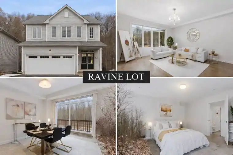 Welcome to 8707 Chickory Trail, a stunning family home on a premium ravine lot with no rear neighbours, offering rare privacy in one of Niagara’s most desirable South End neighbourhoods. This home features 3 spacious bedrooms, 2.5 bathrooms, very large room sizes, a bright open-concept layout, and a spacious oversized kitchen ideal for family living and entertaining. Enjoy the convenience of upper-level laundry and abundant natural light throughout.The basement offers large windows and rough-in for a bathroom, providing excellent in-law suite potential. Additional highlights include a double-car garage and driveway parking for four vehicles. Located minutes from top-rated schools, parks, trails, Costco, Walmart, shopping, restaurants, Cineplex, major highways, and the upcoming Niagara Health Hospital. A rare opportunity combining luxury, space, privacy, and location-perfect for families.