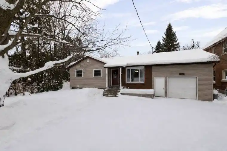 **PRICE REDUCTION** Motivated Seller! Welcome to 268 Mississaga St W, a move-in-ready bungalow conveniently located within walking distance to downtown Orillia amenities, the waterfront, shops, and restaurants. The home offers a practical, functional layout with approximately 1,000 sq ft on the main level and a fully finished 1,000 sq ft lower level, providing flexible living space and the potential for an in-law suite or future income with some minor modifications. The main floor offers three bedrooms, a full bathroom with heated floors, a spacious kitchen, and a welcoming living and dining area centered around a shared wood-burning fireplace, adding warmth and character to the home. Beyond its charm, the wood-burning stove also provides a valuable practical benefit – keeping the home comfortably warm during power outages and winter storms. During the March 2025 ice storm, when many Orillia homes lost power and heat, this home remained toasty warm throughout the entire nine-day outage. The fully finished lower level includes a large family room, a spacious bedroom, and a 3-piece bathroom combined with laundry. With a separate entrance and plumbing already in place for a kitchenette, the lower level can be easily be converted into an in-law suite or income-generating apartment. Outside, enjoy a large backyard with a deck prepared for a future above-ground pool – ideal for entertaining or creating your own private water oasis. An attached single-car garage with generous loft storage adds even more convenience. A solid opportunity for buyers/investors seeking walkability, flexible living space, energy resilience, and future in-law or income potential in a central Orillia location.